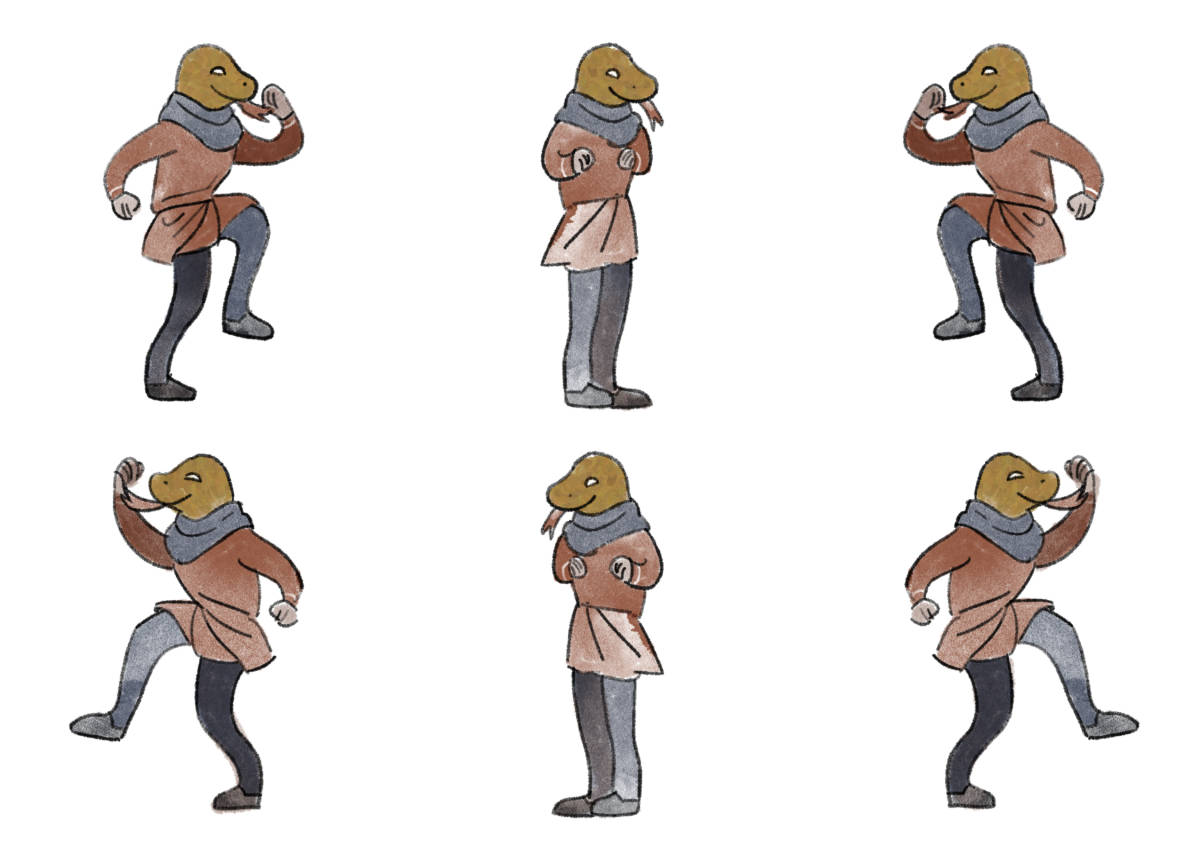For this game jam, I put a lot of effort into 2D animation in Procreate. While not my forte, the art style meant I didn't have to be too precise about it. Unfortunately I'm used to working with full-screen resolutions and created my animations without considering the tiny default screen size we were working with.
