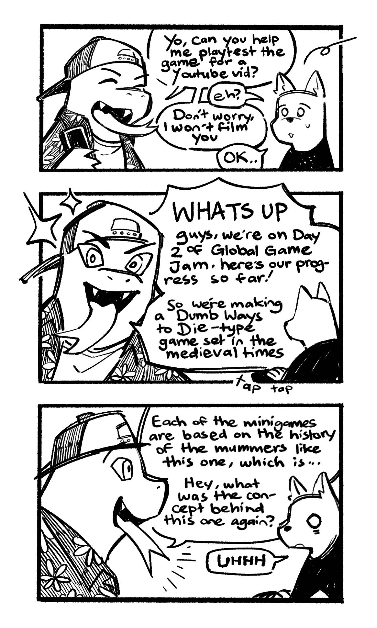 When I saw the theme, I instantly wanted to do something based on mummers, which were, in medieval times, people who would dress in fancy animals costumes and party hard during festivals. Actually, they still exist today if you just go to Scotland or Pennsylvania.