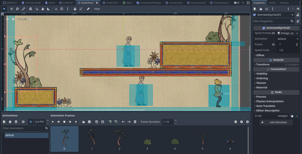 I quickly added some foliage to the masking levels by placing AnimatedSprite2D elements. Each frame was a different tree or bush and whatnot so by setting the frames, I could include more content without having to upload multiple images.