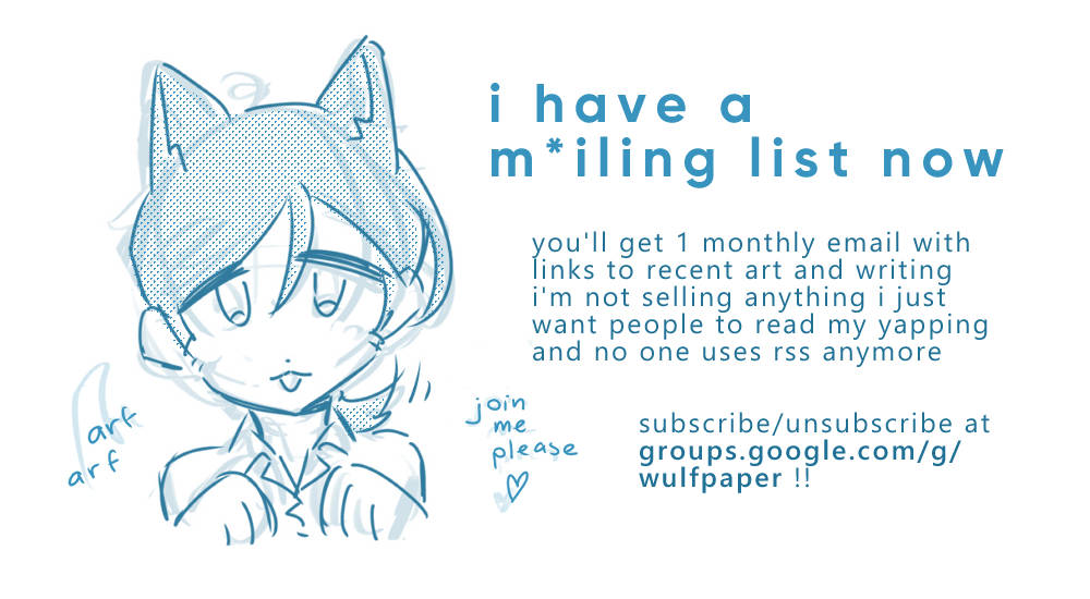 updating my blog on the regular again so i now have a monthly mailing list! join it here on google groups.