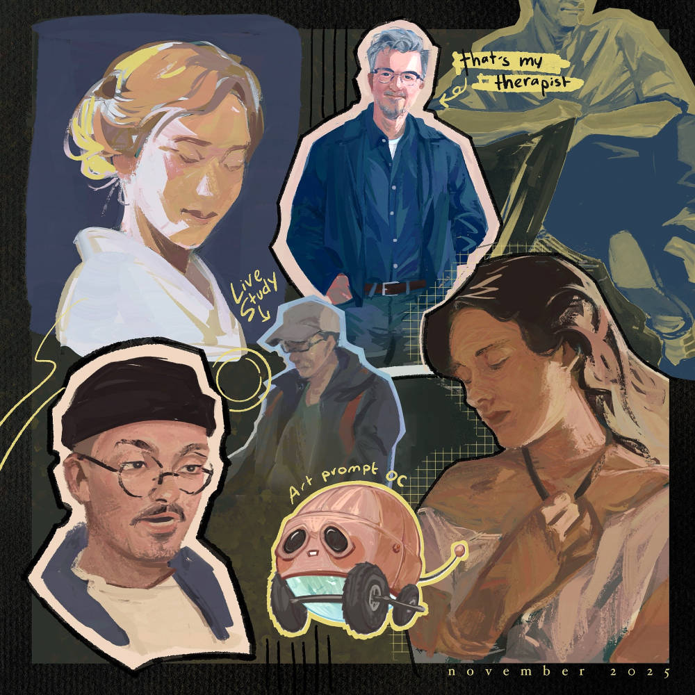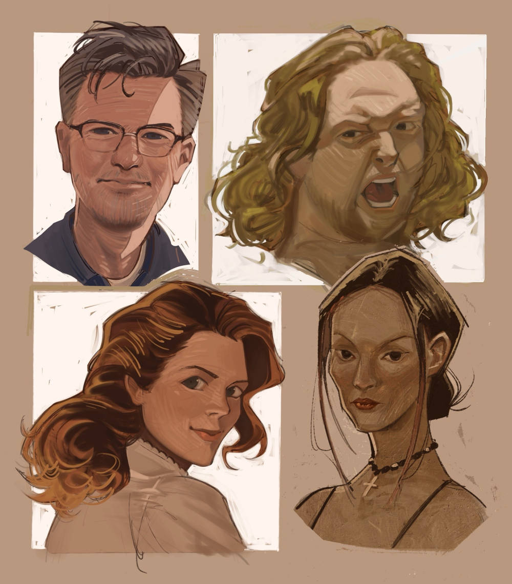 some photo studies with cameos from wrestler james shaw and my gay therapist. if my gay therapist is reading this sorry i keep calling you my gay therapist online. i'm practicing j. c. leyendecker's style... once i figure out a consistent process i'll write a guide. composition of the sketch page inspired by tamagosan1001.